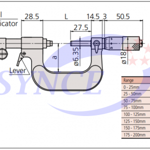 Panme 107-201 Cơ Khí Đo Ngoài 0-25mm, Kết Hợp Đồng Hồ So