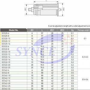 • Collet DCS cho đầu kẹp collet Dinox cho đầu kẹp dao phay Dinox được trang bị tính năng chống văng để ngăn quá trình gia công làm văng mũi dao và cải thiện tuổi thọ của dụng cụ.