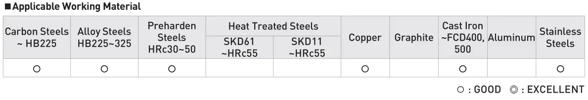 - Chịu mài mòn tuyệt vời bằng cách áp dụng lớp phủ TiAlN.