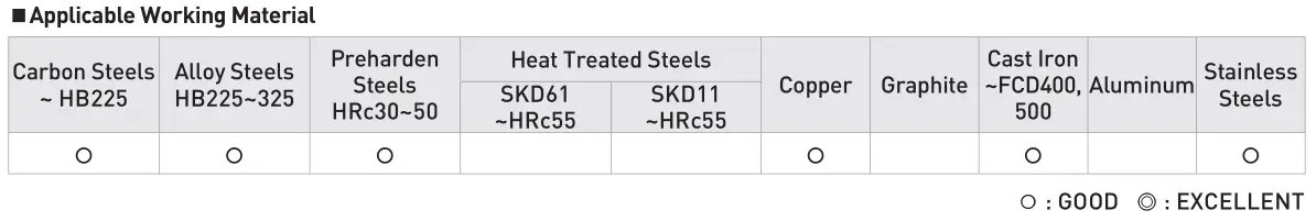 - Khả năng chịu nhiệt tuyệt vời bằng cách áp dụng lớp phủ AlTiN.