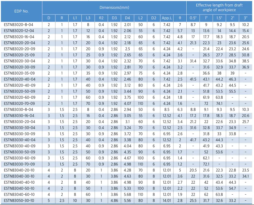 – Phù hợp để chạy thép khuôn sau nhiệt chẳng hạn như SKD61(~55HRC), SKD61(55~63HRC).