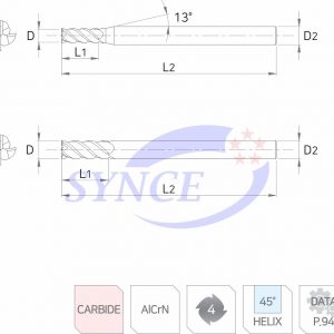 - Dao thiết kế với 4 lưỡi cắt, góc xoắn 45°