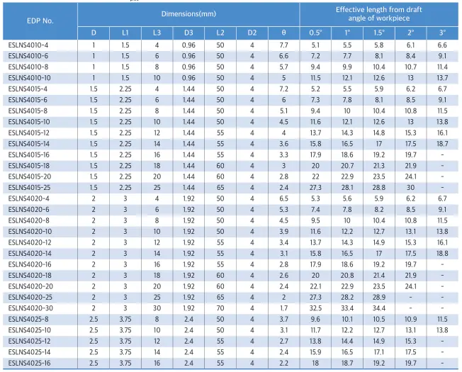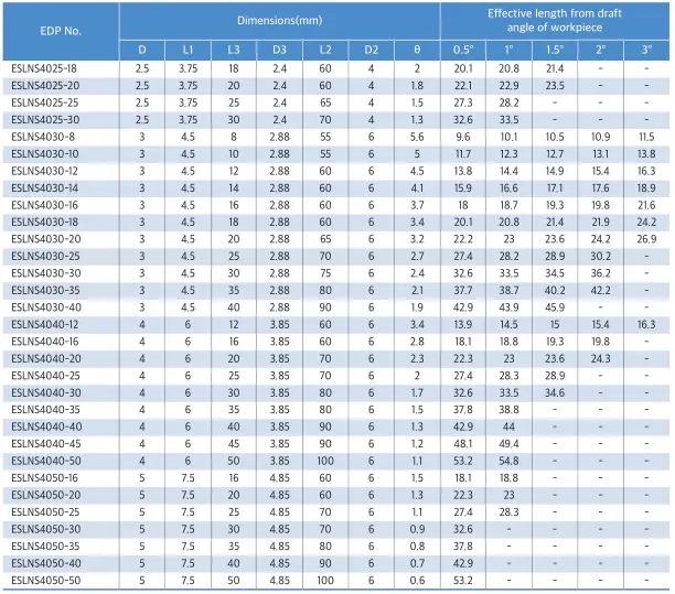 – Chiều dài hiệu dụng khác nhau từ góc côn ngược của phôi, bao phủ khoảng rộng gia công.